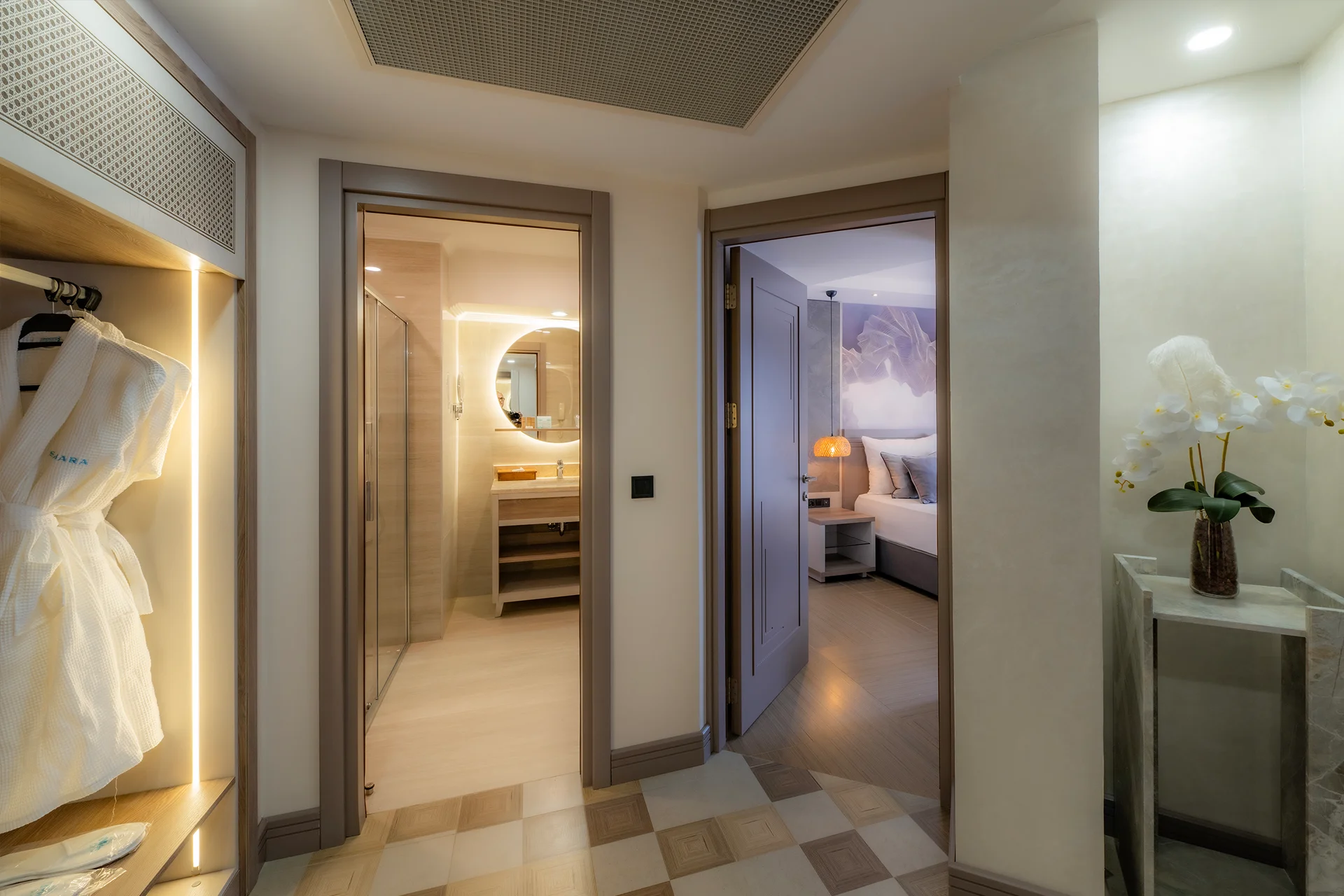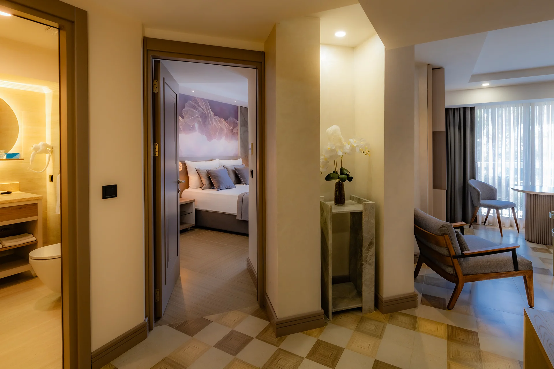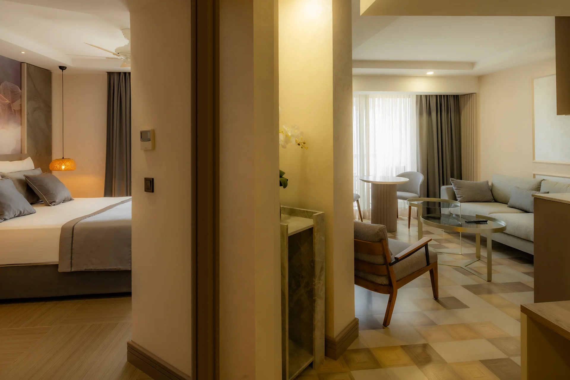 Konaklamanızda daha fazlasını isteyenler için… Junior Suitlerimiz, standart odalardan daha geniş bir yaşam alanı ve konforlu bir oturma grubu sunar. Lüks detaylarla zenginleştirilmiş bu suitler, ferahlığı ve konforu bir arada arayan misafirlerimiz için tasarlandı.