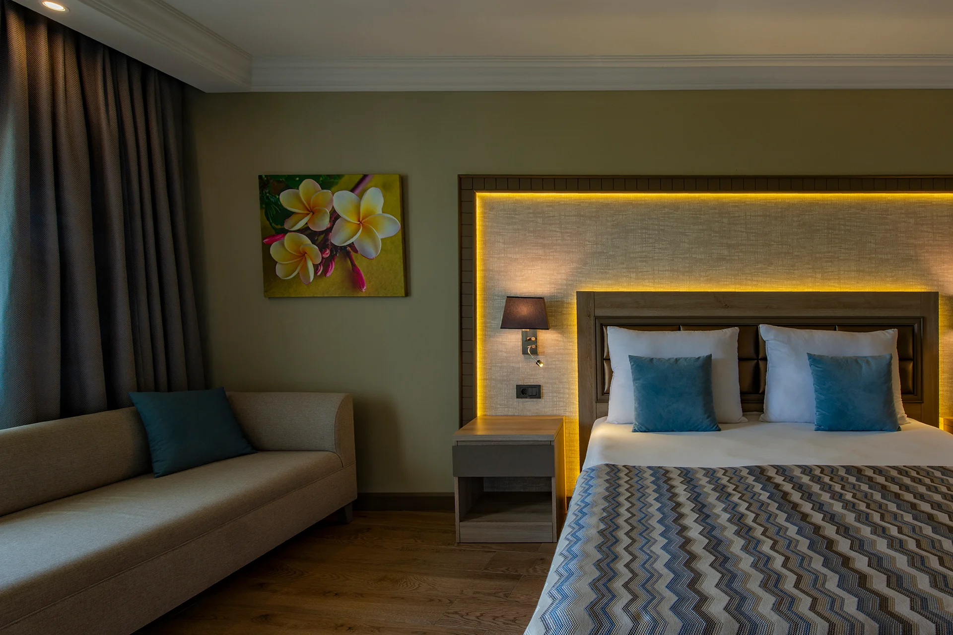 Güne Ege’nin ışıltılarıyla uyanın. Standart odalarımızın tüm konforuna ek olarak, balkonunuzdan Bodrum’un büyüleyici deniz manzarasını kısmen seyredebileceğiniz bu odalar, tatilinize mavi bir dokunuş katacak.