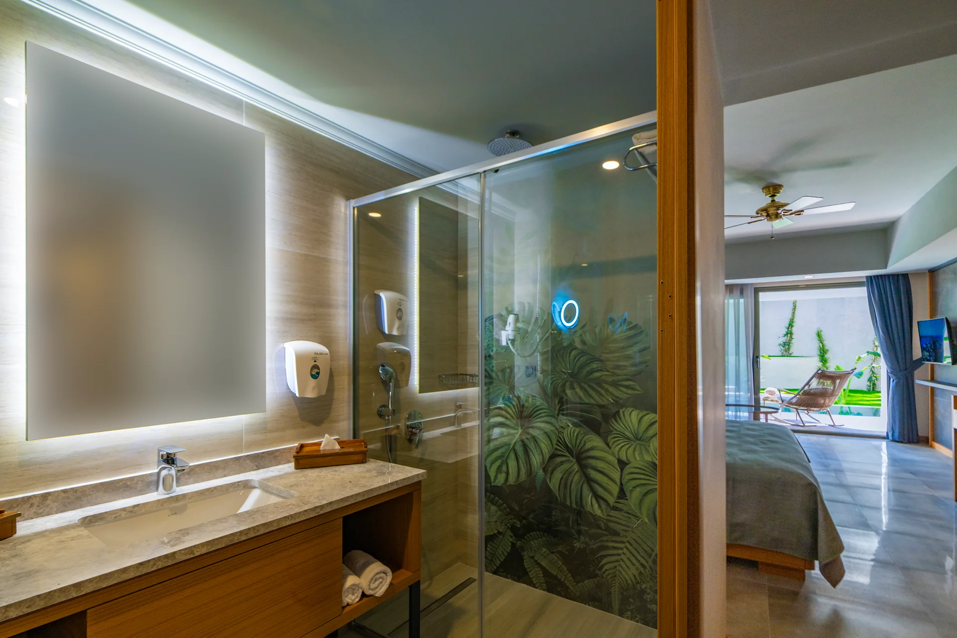 Konfor ve hijyen bir arada. Modern tasarımlı, buklet malzemeleriyle donatılmış size özel banyolarda günün yorgunluğunu atıp yenilenin.