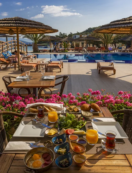Otelimiz, usta şeflerin yönetimindeki mutfaklarıyla gastronomi yolculuğuna çıkarıyor. Türk, Akdeniz ve dünya mutfaklarının en seçkin lezzetlerini sunduğumuz zengin açık büfelerden, manzaraya karşı unutulmaz akşamlar yaşatan A La Carte restoranlarımıza; gün boyu serinletici kokteyller sunan barlarımızdan, geceye ritim katan dans pistimize kadar her damak zevkine uygun bir lezzet durağımız var.